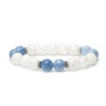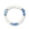 The white and blue bracelet made of natural aquamarine and rock crystal will beautifully accentuate individuality and style. You can purchase a stylish women's accessory made of natural stones at the LeBijou online store. The gentle blue aquamarine will adorn any wrist and become one of the favorite accessories, taking a special place among fashionable and stylish women's jewelry. Women's accessories made of natural stones have some magical properties: they ward off evil and deceit, possess magical power, strengthen friendships, and resolve conflicts. Blue-colored accessories pair perfectly with white, black, gray, and pink colors, allowing them to complement any style and outfit. The highlight of this accessory is the combination of white rock crystal and natural aquamarine stones with luxury-class hardware adorned with zircons.