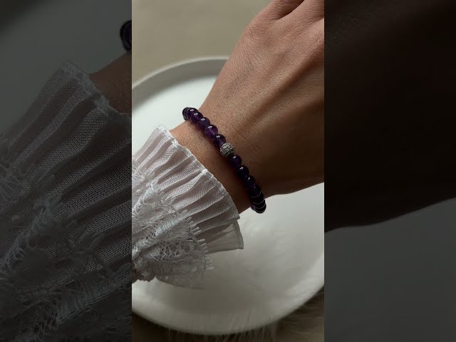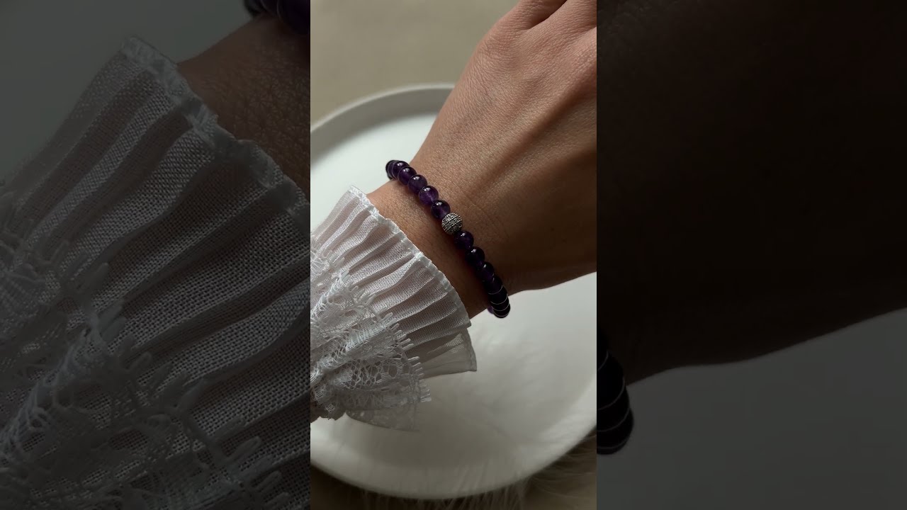 Браслет из натурального камня аметист. Диаметр бусин 6 мм. Основа браслета - прочная двойная резинка. Вставка- люкс фурнитура с камнями фианитами.
