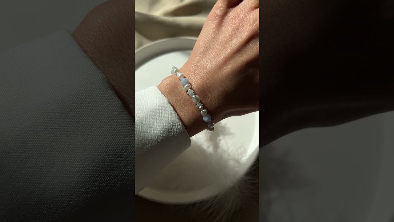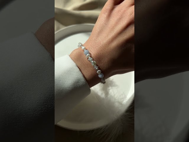 Бусы из натурального аквамарина и жемчуга, размер бусин 4-6 мм, основа - ювелирный тросик, длина бус 36 см + 6 см удлинитель.