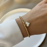 Bracelet with beads and a heart pendant. Bead diameter 2-3 mm. Color: gold. Base - double strong elastic band. Pendant - heart.