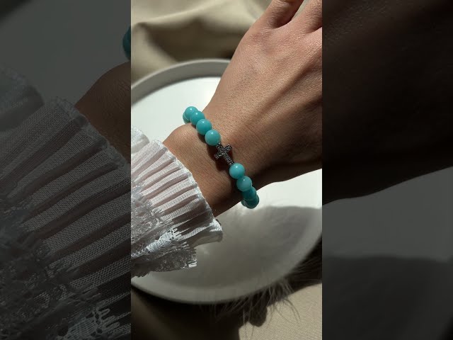 Женские браслеты ручной работы из натуральных камней станут отличным подарком на все случаи жизни, в такие изделия не возможно не влюбиться. Голубые изделия прекрасно сочетаются с белыми, розовыми, нежно-зелеными оттенками, также с другой бижутерией. Камни нежно голубого натурального агата украшены элитной фурнитурой класса люкс в виде крестика. Основа стильного аксессуара - двойная прочная резинка, которая не размокает и не рвется. Для тех, кто верит в магические и целебные свойства натурального агата, он приносит гармонию в окружающую среду, благотворно влияет на уверенность в себе, защищает от опасностей и негативной энергетики. Купить женский браслет из натуральных камней можно в интернет-магазине ЛеБИЖУ. Доставляем по всей Украине. Перед покупкой рекомендуем ознакомиться с кратким видео обзором. Браслет ручной работы. Живи со вкусом - LeBijou!