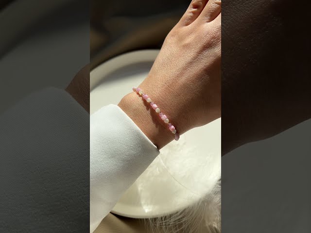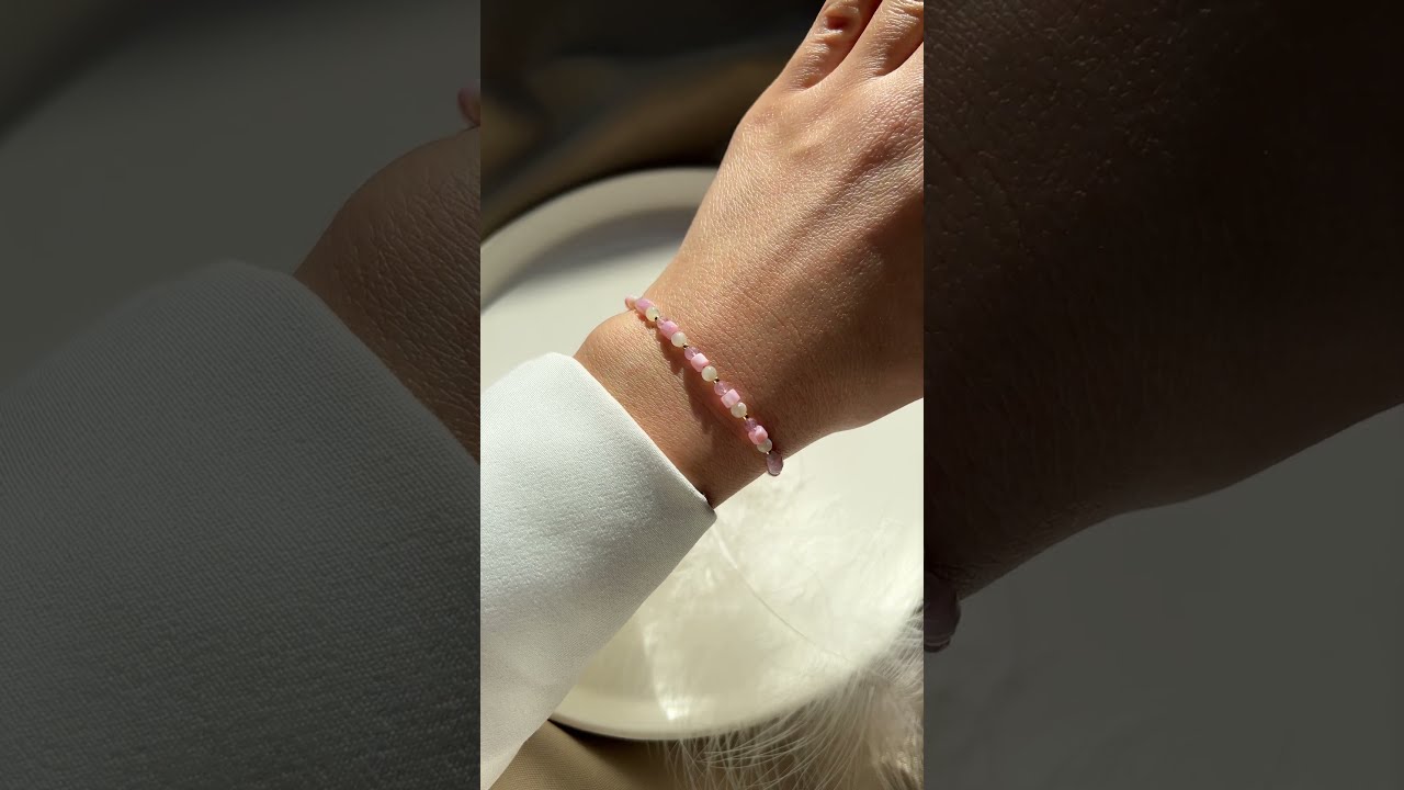 Браслет из натурального камня розовый кварц и перламутр. Диаметр камней 2-3 мм. Основа - двойная прочная резинка
