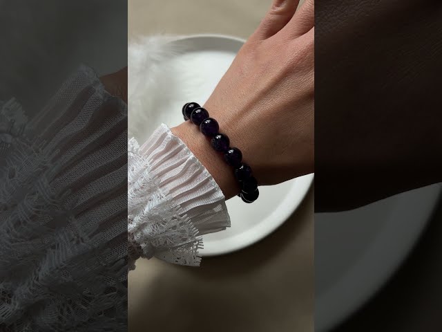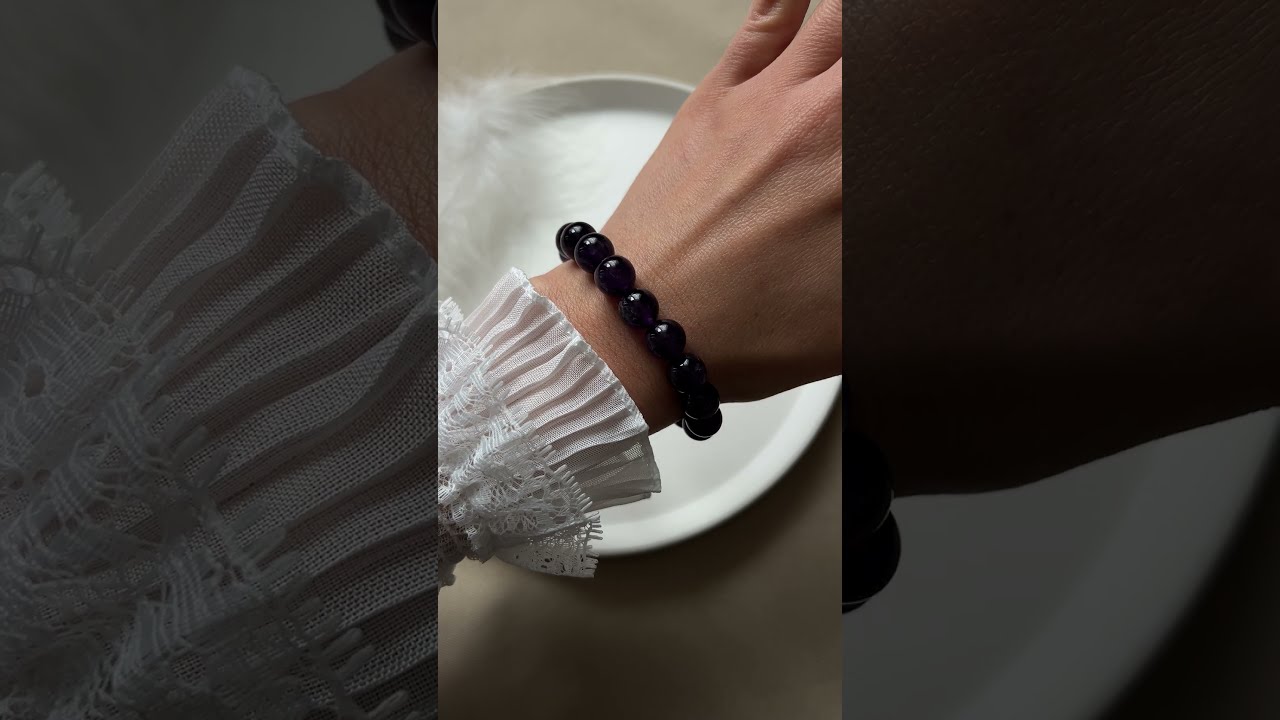 Браслет из натурального камня аметист. Диаметр бусин 10 мм. Основа браслета - прочная двойная резинка.
