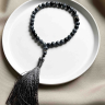 Ein Rosenkranz mit 33 Perlen aus natürlichem Obsidian. In Grau gehalten. Perlen mit einem Durchmesser von 10 mm.