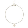 Elegant choker featuring white cubic zirconia and a delicate clover pendant. The choker measures 63 cm with a 6 cm extender. Luxurious hardware that does not tarnish, 24K gold-plated brass. Pendant adorned with natural mother-of-pearl.