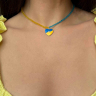 Чокер - это короткое ожерелье, которое плотно прилегает к шее и имеет регулируемую длину. Данная модель чокера выполнена из желто-голубых бусин шпинели с подвеской сердце. Тонкое изящное украшение на шею пользуется большой популярностью. Украшение выполнено вручную. Длина чокера 37 см + удлинитель 5 см.