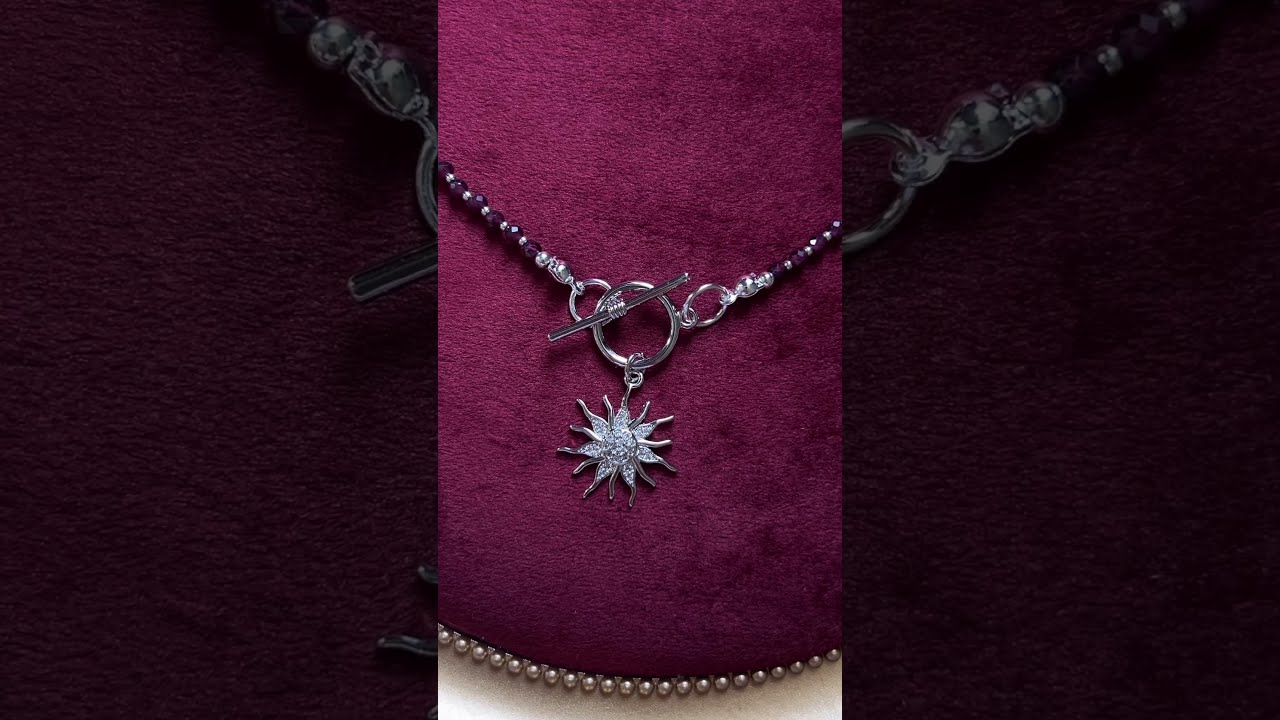Закажите это колье уже сегодня и добавьте в свой образ свет, энергию и благородную красоту. Натуральный гранат и серебряное солнце станут вашим личным символом силы, тепла и уверенности.