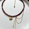 Купить двуслойное колье из камня гранат с подвеской солнце и цепочками