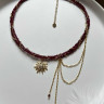 Двуслойное колье из натурального граната с солнцем и цепочками. Фурнитура премиум класса, латунь с покрытием позолоты 24 карата, не темнеет.