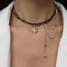 Двуслойное колье из камня гранат с подвеской «солнце» и цепочками — энергия, свет и выразительный стиль