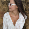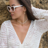 - Идеально подойдёт к летним платьям, белым рубашкам и лёгким топам.