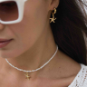 Белое колье из натурального перламутра с подвеской в форме морской звезды — это элегантность, лёгкость и природная красота, воплощённые в одной детали.