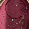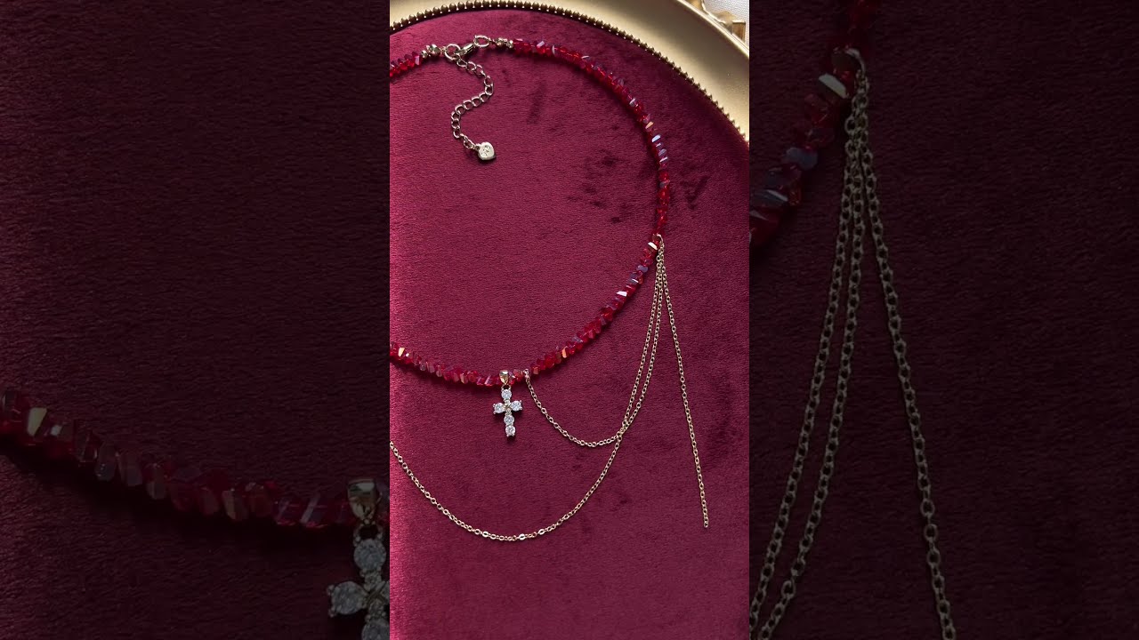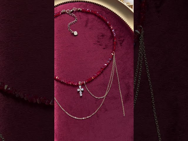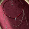 Красное нарядное колье с крестиком и цепочками — стильный акцент для особых образов