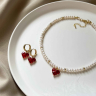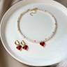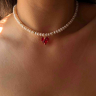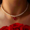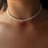 Exklusiver Choker aus hochwertigen Perlen mit rotem Herzanhänger