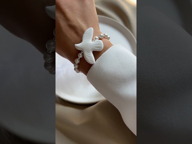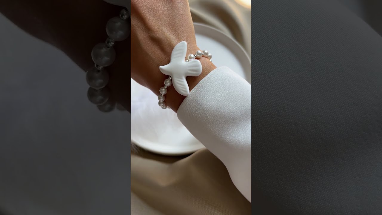 Браслет из жемчуга майорка высшего класса, размер бусин 6 мм, основа - ювелирный тросик. Декор - белая керамическая птица (горлица), голубка.