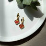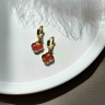 Серьги с подвеской клевер выполнены вручную. Фурнитура - латунь с позолотой 24K. Цвет оранжевый.
