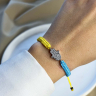 Плетеный браслет в желто-голубых тонах, украшен рукой Фатимы. Размер регулируется.