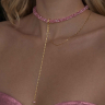 Розовое колье со съёмным галстуком — это тренд нового сезона, который сочетает в себе элегантность, модную дерзость и функциональность. Такое украшение может менять форму и настроение вашего образа: от минималистичного до акцентного и выразительного. Универсальный аксессуар, который подходит как под вечерние выходы, так и под повседневные образы.