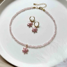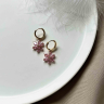 Handgefertigte Transformatorohrringe. Beschläge - Messing mit 24K Vergoldung. Farbe rosa. Anhänger - rosa Blume, Vergoldung auf Messing 24K.