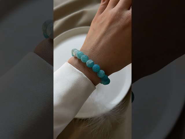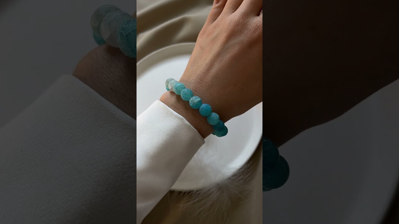 Браслет из натурального камня агат. Цвет голубой (синий). Диаметр бусин - 10 мм. Основа - двойная прочная резинка.