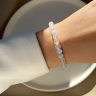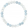 Браслет из натурального камня аквамарин и лунный камень. Диаметр камней 6 мм. Цвет - голубой и прозрачно-белый.