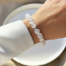 Bracelet made of natural mountain crystal. Inlay - premium hardware with zircons. Stone diameter 10 mm. Color - clear-white.
