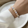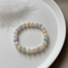 Weibliches Armband aus natürlichen Morganit-Steinen. Standardgröße von 16 cm Handgelenksumfang. Robustes Gummiband als Basis. Perlen mit einem Durchmesser von 8 mm.
