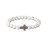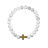 Браслет с крестом из натурального камня кахолонг. Цвет белый. Диаметр бусин - 8 мм. Основа браслета - двойная прочная резинка.