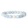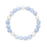 Бело-голубой браслет из натурального аквамарина и горного хрусталя прекрасно подчеркнет индивидуальность и стиль. Нежно-голубой аквамарин украсит любое запястье и станет одним из самых любимых украшений, займет почетное место в ряду модной и стильной женской бижутерии. Обладают магической силой, укрепляют дружбу, разрешают конфликты. Аксессуары голубого цвета отлично сочетаются с белыми, черными, серыми и розовыми цветами, их можно носить под любой стиль и образ. Изюминка данного украшения - тандем белого горного хрусталя и натуральных камей аквамарина.