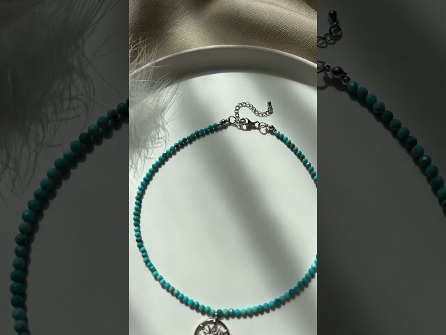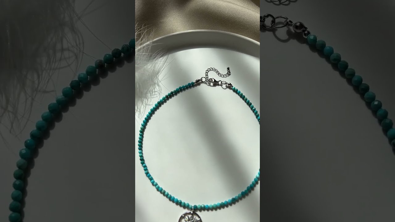 Чокер из натурального камня бирюза. Диаметр бусин - 3-мм. Основа - ювелирний трос. Замок - карабин. Длина чокера 36+6 см удлинитель.