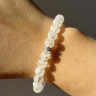 Браслет из натурального камня горный хрусталь. Вставка - камни фианиты. Диаметр камней 8 мм. Цвет - прозрачно-белый