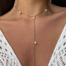 Тоненькая золотая цепочка-галстук с жемчужинами