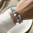 Набор браслетов из натуральных камней аквамарина, гематита и фианитов. Цвет голубой, серебро. Диаметр бусин - 10, 8 мм. Основа - двойная прочная резинка. (4514+3436)