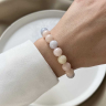 Ein feminines Armband aus natürlichen Morganit-Steinen. Standardgröße von 16 cm Handgelenksumfang. Robustes Gummiband als Basis. Perlen mit einem Durchmesser von 8 mm.