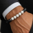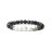 Armband aus natürlichen Obsidian- und Kacholong-Steinen. Farben: Grau, Schwarz, Weiß. Perlen-Durchmesser: 8 mm. Doppelte starke Gummibasis.