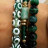 Set Armbänder aus natürlichen Steinen: Achat, Katzenauge, Amazonit. Stein-Durchmesser 8 mm. Farben: Grün, Gold, Weiß. Herz-Anhänger. (4646+4944+4943)