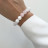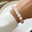 Armband aus natürlichen Steinen: rosa Quarz, weißer Jade und Kristall. Perlen-Durchmesser: 10 mm. Robustes Doppelgummi als Basis des Armbands.