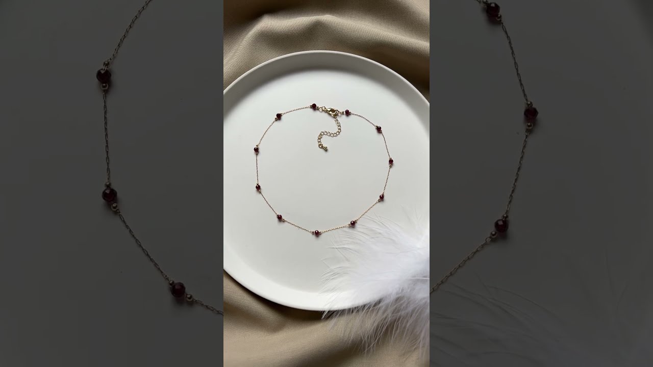 The gold-plated garnet necklace will emphasize individuality, add femininity, and become a bright accent in any look.
