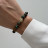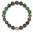 Armband aus natürlichen Steinen aus Jade, Variscit und Hämatit, grün mit Goldfarbe. Perlen-Durchmesser 8 mm. Robuste doppelte Gummibasis.