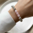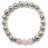 Armband aus natürlichen Vulkanlavasteinen. Perlen-Durchmesser: 8 mm. Farbe: Silber. Doppelte starke Gummibasis. Einsetzung: rosa Quarz.
