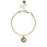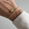 Women's bracelet made of Japanese gold beads. Bead diameter 1-2 mm. Color: gold. Pendant - eye. Base - jeweler's torsion.