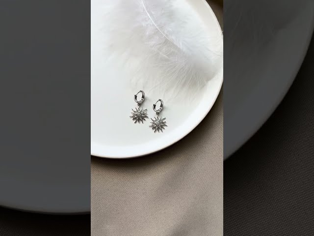 Серьги с подвеской солнце. Фурнитура премиум класса, латунь с покрытием родий, не темнеет. Цвет серебро.