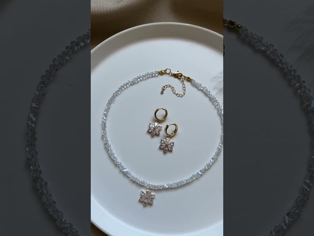 Серьги с подвеской цветок. Фурнитура премиум класса, позолота по латуни с покрытием 24K. Цвет белый