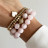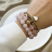 Набор браслетов из натуральных камней розового кварца, гематита, фианитов. Цвет розовый с золотом. Диаметр бусин - 10, 4, 3 мм. Основа - двойная прочная резинка. ( 4983+4493+4525+4911)