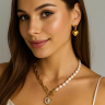 Украшение на шею из латуни и жемчуга в классическом стиле, длина цепи 41 см. Стойкое покрытие. Не вызывает аллергии. Бижутерия класса люкс - лучшая идея для подарка. Бесплатно доставим по Украине.