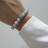 Браслет із натурального каменю аквамарин. Вставка - намистина з фіанітами. Діаметр каміння 8 мм. Колір блакитний.