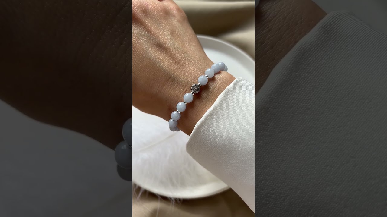 Браслет із натурального аквамарину легко поєднується з будь-яким гардеробом. Його універсальний колір підходить як до світлих, так і до темних образів.