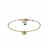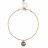 Жіночий браслет на ногу із золотого японського бісеру. Діаметр намистин 1-2 мм. Колір золото. Підвіска – око. Основа – ювелірний торс. Довжина браслета 26 см.