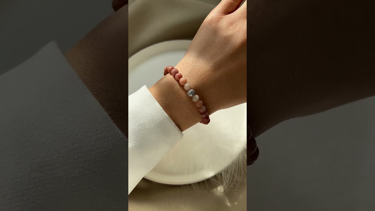 Браслет із натурального каменю опал. Діаметр намистин 6 мм. Основа – подвійна міцна гумка.
