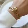 Luxe Class Heart Bracelet. Zinc metal. Color: gold. Non-tarnish. Non-peel. Bracelet length: 19 cm.